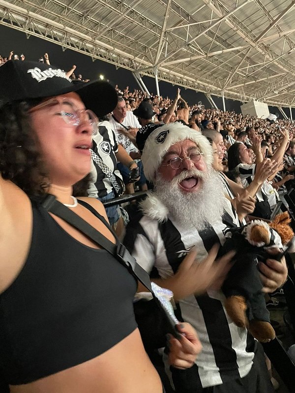 O papai noel, Limachem Cherem, levou a filha, esposa (flamenguista) e sua rena Rudolfo (a de nariz vermelho) pra assistir a final da Libertdores. Foram momentos tensos com choro de alegria e tristeza. Em especial, quando o jogador do Botafogo foi expulso aos 39 segundos do primeiro tempo, teve um silêncio e choro. Mas, na no minuto final quando o Botafogo fechou o placar em 3×1 em cima do Atlético MG, foi a hora do choro de alegria e desabafo.