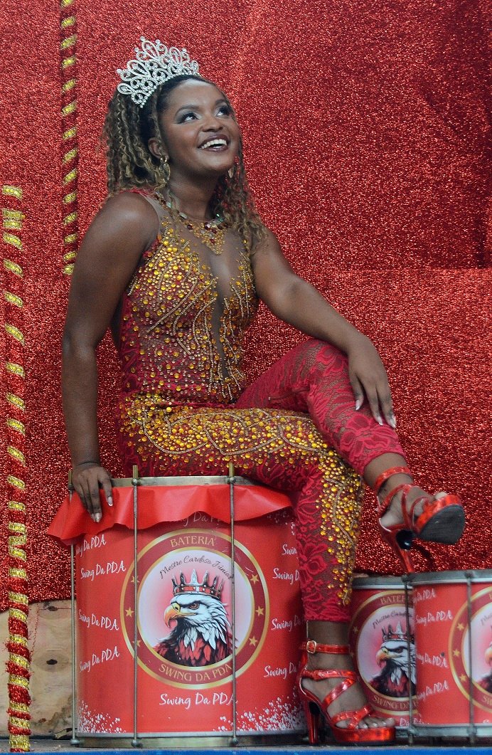 A nova rainha destaca ainda a importância da bateria dentro do desfile e afirma que pretende se aproximar da comunidade por meio dos ensaios e do convívio com os segmentos. “A bateria é o coração da escola e farei o máximo para entregar tudo o que ela merece”, reforça.