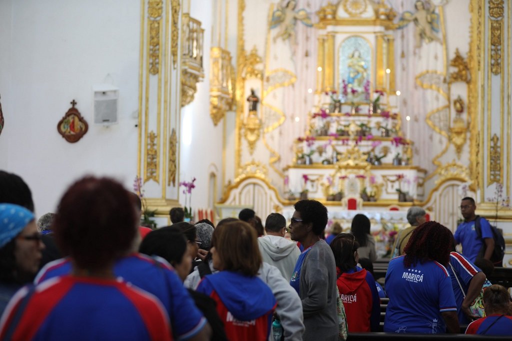A Prefeitura de Maricá, por meio da Secretaria de Educação, promoveu nesta terça-feira (12/08), às 9h, uma visita guiada ao Museu Sacro da Paróquia Nossa Senhora do Amparo, no Centro, com cerca de 110 alunos da Escola Municipal de Idosos — polos Centro (Milton Felipe Diniz) e Itaipuaçu. A atividade fez parte do projeto “Conhecendo Maricá”, que realiza visitas com os idosos em diversos pontos culturais e inciativas do município