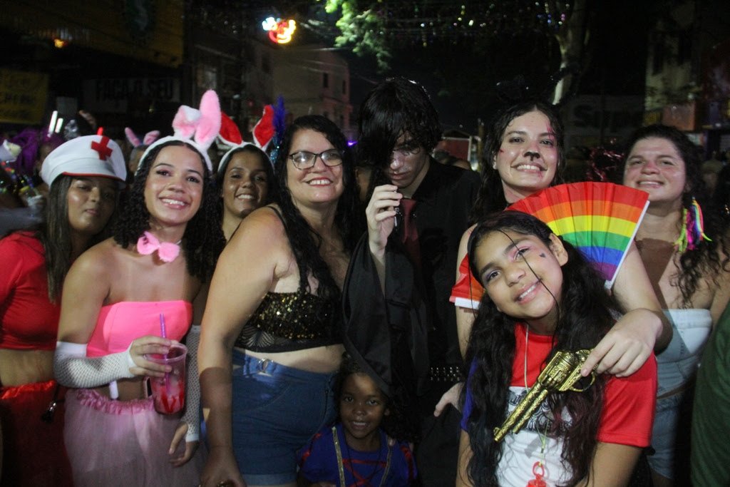 Durante os dias de festas, o Carnaval Raiz também conta com a Rota das Fantasias 2026, iniciativa que busca resgatar grupos tradicionais como bate-bolas, pierrôs e Clóvis, figuras marcantes dos antigos carnavais da cidade. Um dos grupos participantes foi o de Deivid Gomes, de 30 anos. Ele e mais 40 amigos se fantasiaram de canibais e participaram da folia no Pacheco.