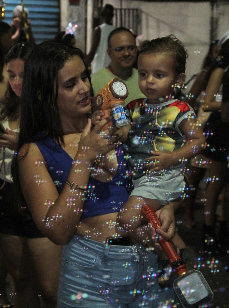 Na Trindade, bairro muito movimentado, a gonçalense Camila Bello, de 23 anos, disse que é o primeiro Carnaval que curte com sua filha nos braços.