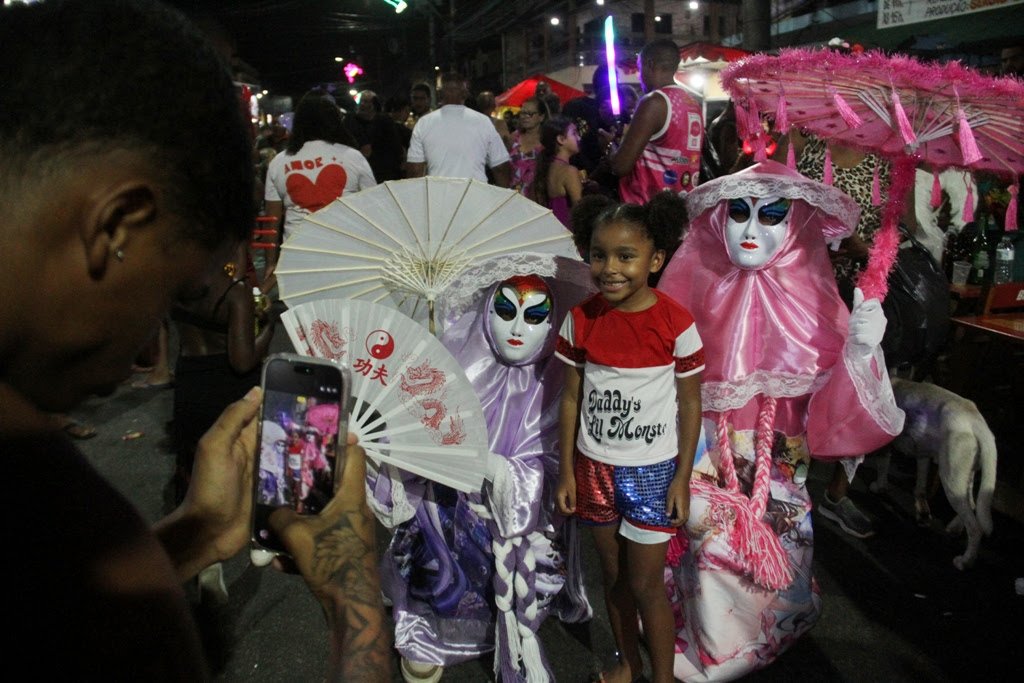 Durante os dias de festas, o Carnaval Raiz também conta com a Rota das Fantasias 2026, iniciativa que busca resgatar grupos tradicionais como bate-bolas, pierrôs e Clóvis, figuras marcantes dos antigos carnavais da cidade. Um dos grupos participantes foi o de Deivid Gomes, de 30 anos. Ele e mais 40 amigos se fantasiaram de canibais e participaram da folia no Pacheco.