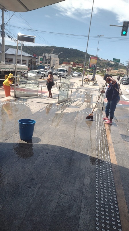 Equipes de garis da Companhia de Limpeza de Niterói (Clin) realizaram, nesta quinta-feira (13), a lavagem de 10 estações dos terminais de ônibus da TransOceânica. A Clin executa esse serviço regularmente, uma vez por mês, utilizando equipamentos de última geração e específicos para a lavagem. Já a varrição das estações é realizada regularmente três vezes por semana.