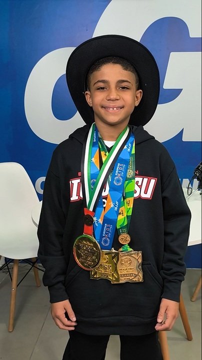 — Essa medalha ganhei mês passado fomos a São Paulo e eu conquistei meu tetracampeonato brasileiro, e fiquei muito feliz, essa outra foi do mundial lá nos Emirados Árabes, no ano passado que eu fui com o pessoal lá da academia, e essa foi do Europeu e também foi ano passado, foi minha primeira vez na Europa, em Portugal, fui só eu e meu mestre. — contou Cavalo Doido.