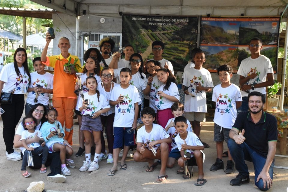 Crianças e jovens que são atendidos pela Associação Projeto de Inclusão Social Amigos da Ponta D`Areia (PISA) tiveram a oportunidade de conhecer o viveiro da Companhia de Limpeza de Niterói (Clin), que fica na sede da empresa, no bairro de São Lourenço.