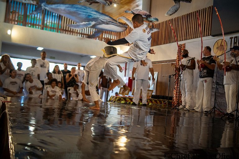 A abertura do festival aconteceu na sexta-feira (1º), no Instituto Pretos Novos, na Pequena África (RJ), com um momento potente de reflexão sobre a ancestralidade negra e a força da capoeira como herança viva. Na ocasião, foram lançados dois importantes livros: “Da Navalha ao Berimbau”, do Mestre Columá, e “Bimba, um século da capoeira regional”, do Mestre Nenel, filho de Mestre Bimba, patrono da capoeira regional. O encontro foi marcado por falas emocionantes e uma apresentação sobre o Instituto feita por Alexandre Nadai e uma simbólica roda de capoeira dentro do IPN, espaço sagrado da memória negra no Brasil.