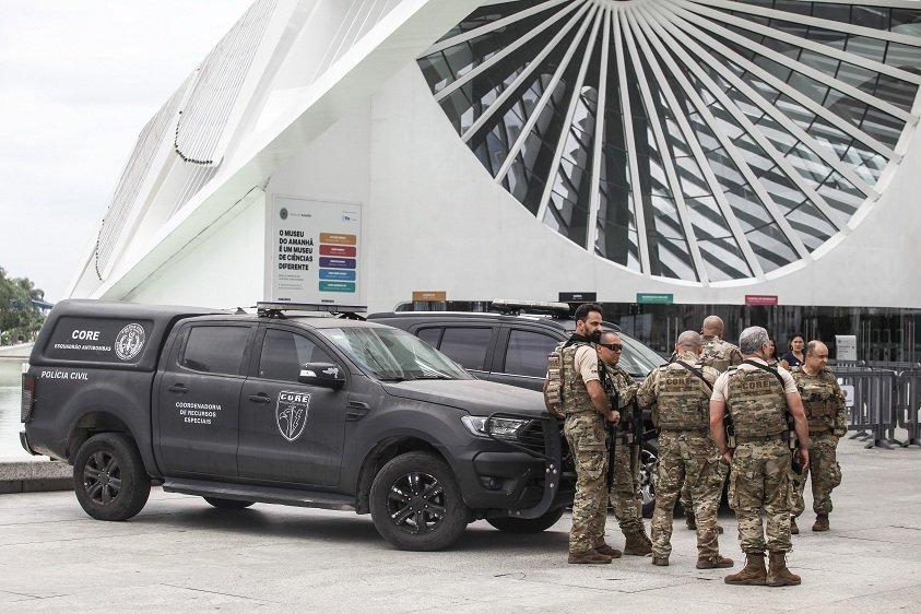 O Governo do Estado, por meio da Secretaria de Estado de Polícia Civil (Sepol), está realizando varreduras em locais que sediarão eventos e reuniões da 19ª Cúpula de Líderes do G20. A ação, conduzida pelo Esquadrão Antibomba, integra o esquema especial de segurança pública do Estado para proteger instalações, autoridades e o público. Na manhã deste domingo (17/11), o Museu do Amanhã, na Zona Portuária, foi alvo de uma dessas inspeções.