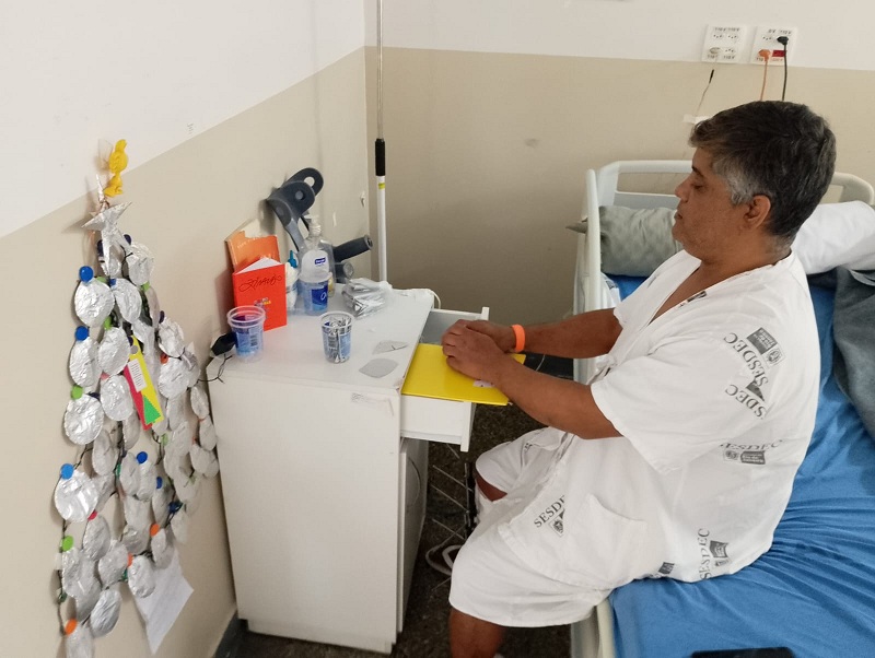 “Eu sou muito ansioso e comecei a fazer esse trabalho artesanal. Estamos no período de festas de Natal e quis enfeitar e trazer esse espírito natalino para o quarto. Trouxe alegria e esperança”, comentou Willian que se acidentou em maio desse ano e enfrentou a terceira cirurgia na unidade de saúde.