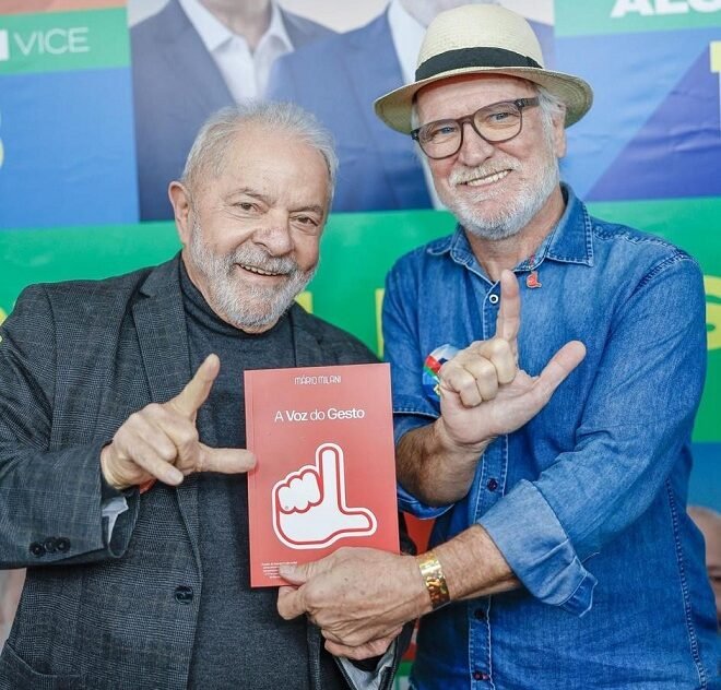 O jornalista e publicitário paranaense Mário Milani lançou o livro “ A Voz do Gesto”, que conta história da criação do “L” que marcou e marca a trajetória política de Lula como símbolo de luta e liberdade. O prefácio é do próprio presidente Lula.