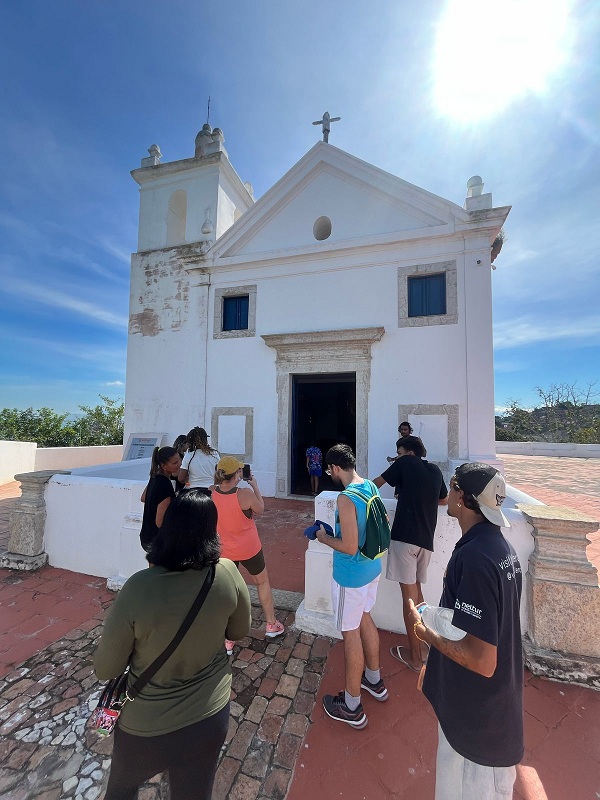 Os Monitores do Centro de Atendimento ao Turista (CAT) da Boa Viagem, João Pedro Oliveira e Marcos Vinicius Vicente (este também portador da mesma síndrome) caminharam com os visitantes e falaram sobre equipamento turístico de Niterói, não só como patrimônio histórico tombado pelo IPHAN (Instituto do Patrimônio Histórico e Artístico Nacional), localizado numa área verde preservada, cuja Igreja de Nossa Senhora da Boa Viagem foi toda restaurada e o espaço ainda ganhou um museu, além da área do Fortim.