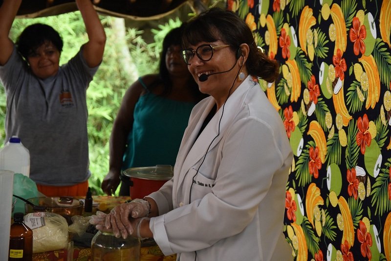 “Chamamos isso de tecnologia social: a maneira acessível como transmitimos o conhecimento. A ideia é que ele seja replicado. É fundamental saber exatamente qual planta está sendo usada e suas propriedades, além de seguir os cuidados necessários no preparo. Demonstrei na prática, passo a passo, como higienizar as plantas e utilizar os fitoterápicos de forma racional”, explicou a professora Thelma.
