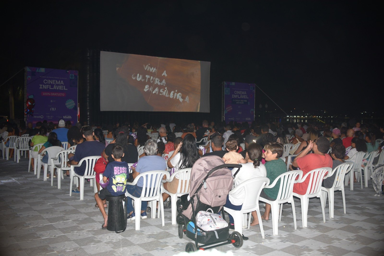A programação teve início às 18h, com atividades de musicalização conduzidas pelo grupo Muriquinho Pequenino, promovendo interação com o público infantil. Em seguida, às 19h, foram exibidos o curta “Saci do Espraiado” e o filme “Nosso Sonho” encerrando a noite.
