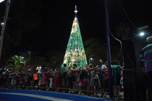 Após muita expectativa, o ponto alto da noite: a chegada de Papai Noel e a inauguração da Árvore de Natal. Papai Noel chegou de trenzinho à Praça da Trindade, encantando as crianças. Após desejar um Feliz Natal aos presentes, a árvore de Natal de 23 metros foi inaugurada, rapidamente atraindo a atenção do público, que fez questão de registrar o momento em fotos com família e selfies.