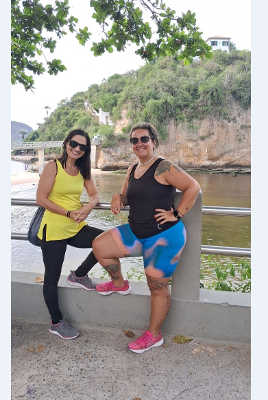As amigas da Verônica, Tatiana Nascimento (Profissional de Educação Física) e Sandra Ferreira (Estudante) como o grupo todo, enquanto subiam, ouviram, atentamente, as explicações do Monitor da Neltur, João Vicente Oliveira, sobre a história do patrimônio histórico-cultural, paisagístico, e religioso, um dos mais frequentados e ricos de Niterói.