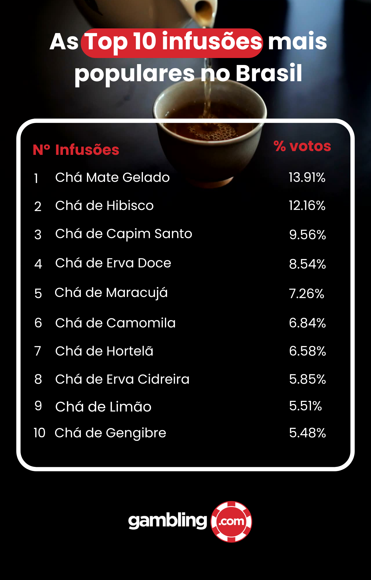 Uma pesquisa da Gambling.com consultou mais de 3.500 brasileiros e perguntou quais são suas infusões preferidas.