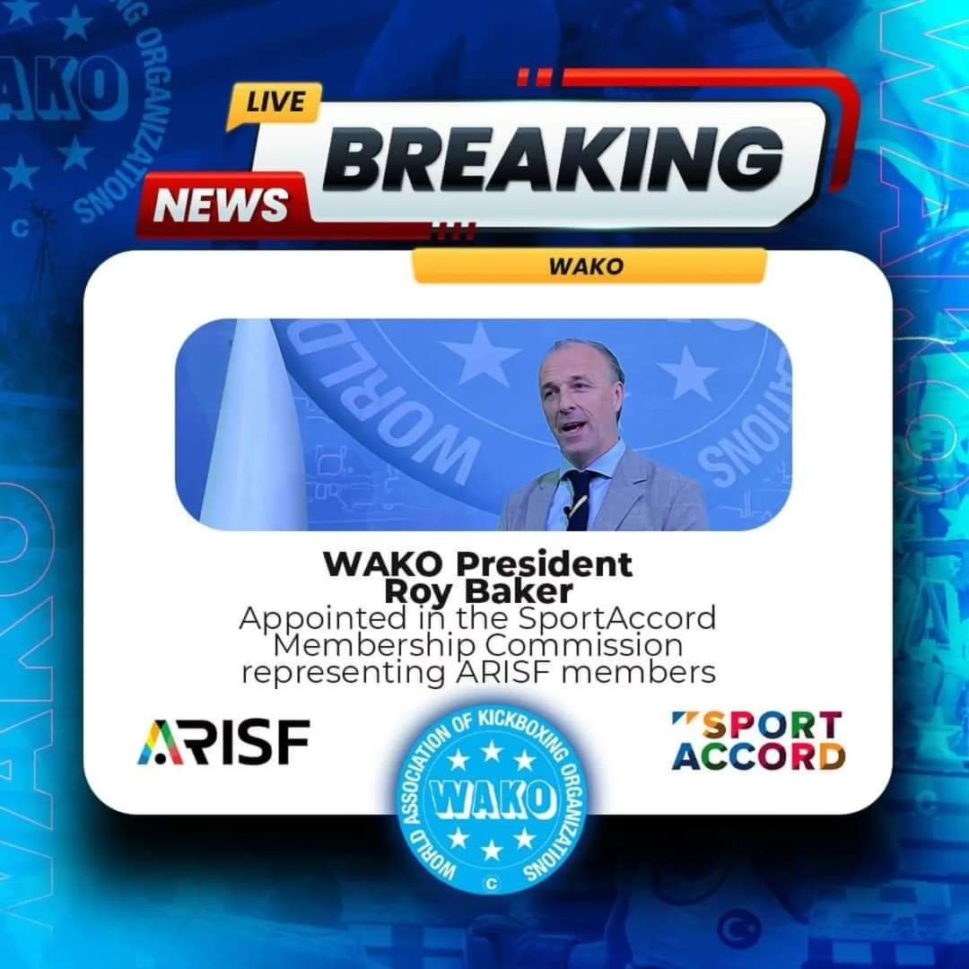 Essa Comissão inclui representantes de quatro entidades reconhecidas pelo COI, e é com grande satisfação que informamos que o presidente da WAKO, Roy Baker, foi indicado como representante da ARISF internacional.