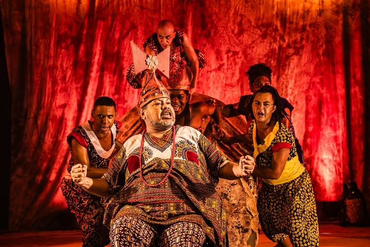 No palco seis atores negros, acompanhados de dois músicos, constroem e personificam uma África ancestral, mítica e carregada de simbologias. O espetáculo foi selecionado pelo Edital de Cultura Sesc RJ Pulsar 2025 e irá circular por diversas Unidades do SESC RJ