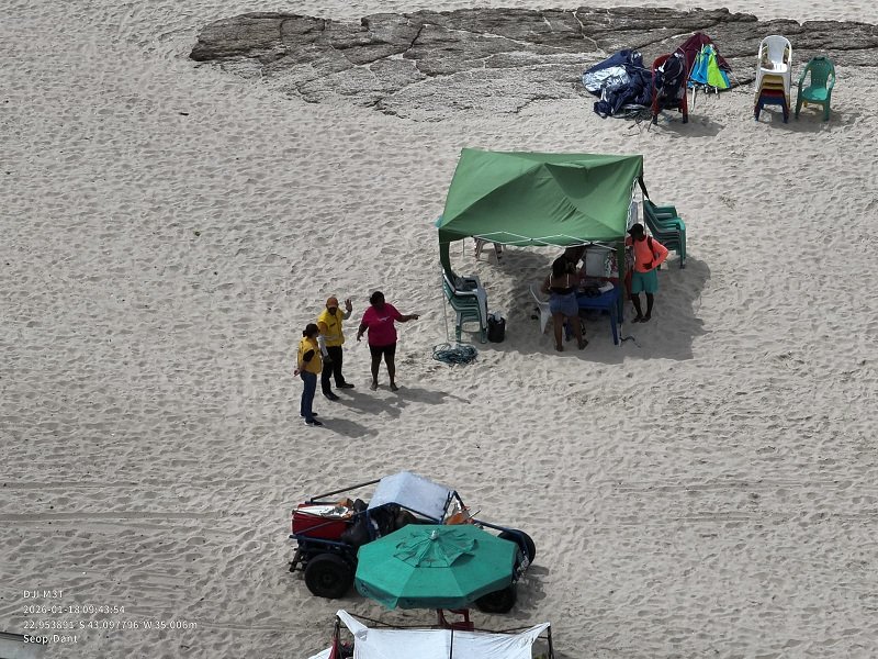 Durante a ação, equipes da Seop e do Rondas de Ações Sociais (RAS) fiscalizaram pontos de barracas autorizadas na orla, com solicitação da apresentação das licenças para verificação da regularidade. O monitoramento aéreo também permitiu identificar a atuação de indivíduos exercendo, de forma irregular, a atividade de flanelinhas, abordando motoristas sem credenciamento e orientando o estacionamento de veículos em locais proibidos, como áreas de restinga.