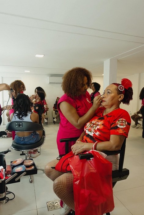 Iniciativa aconteceu antes do ensaio técnico e beneficiou componentes com serviços gratuitos de cabelo e maquiagem