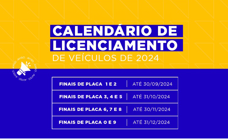 Veja abaixo o calendário de licenciamento de 2024: