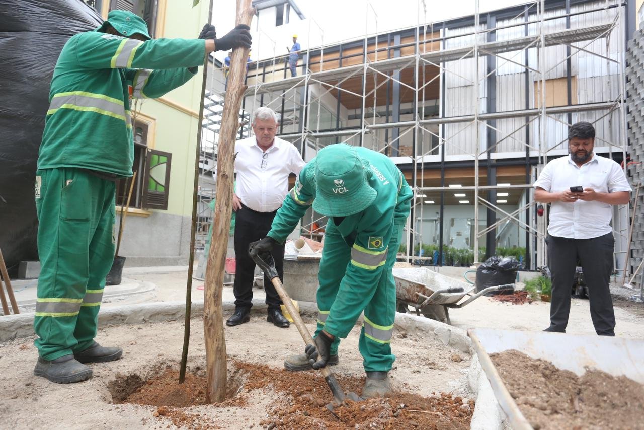 A Casa Norival de Freitas está na fase de acabamento das obras de reforma e restauração e chama a atenção de quem passa pelo imóvel histórico, na Rua Maestro Felício Toledo, no Centro de Niterói. O prefeito Axel Grael vistoriou a obra, nesta sexta-feira (18), e acompanhou o plantio de três mudas de pau-mulato, uma espécie típica da flora da Amazônia. As mudas fazem parte do projeto de paisagismo da Casa. Outras espécies estão sendo colocadas nos muros laterais do imóvel.