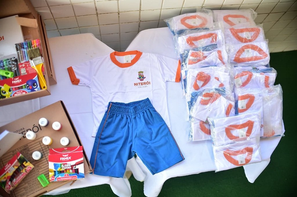 Os alunos receberam camisas e shorts, além de caderno, lápis de cor, giz de cera, cola, apontador, tesoura, massinha e outros materiais escolares. No meio do ano, também está prevista a distribuição do kit de inverno, com calças e casacos.