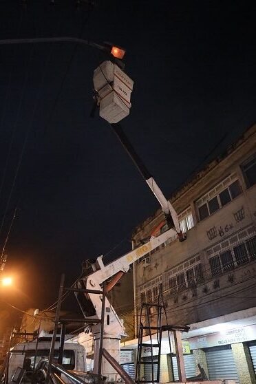 Na região central da cidade, trabalho de implantação da nova iluminação aconteceu na Rua Barão do Amazonas
