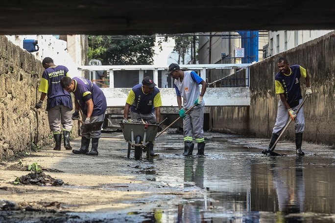 Ainda na Zona Sul da cidade, no bairro de São Francisco, a Seconser atuou com as equipes de drenagem no canal de São Francisco, dois canais na travessa Azamour e no canal da Avenida 7 de Setembro, em Icaraí.