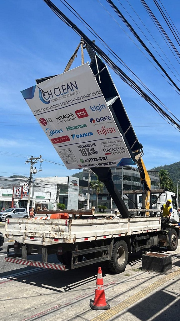 A Prefeitura de Niterói removeu, nesta terça-feira (04), um outdoor que estava em situação irregular na Estrada Francisco da Cruz Nunes, em Piratininga. A ação faz parte do programa Poluição Visual Zero, que tem como objetivo retirar elementos que prejudiquem a estética urbana e causem poluição visual, além de melhorar a acessibilidade, eliminando obstáculos que possam comprometer a mobilidade de pedestres e pessoas com deficiência.