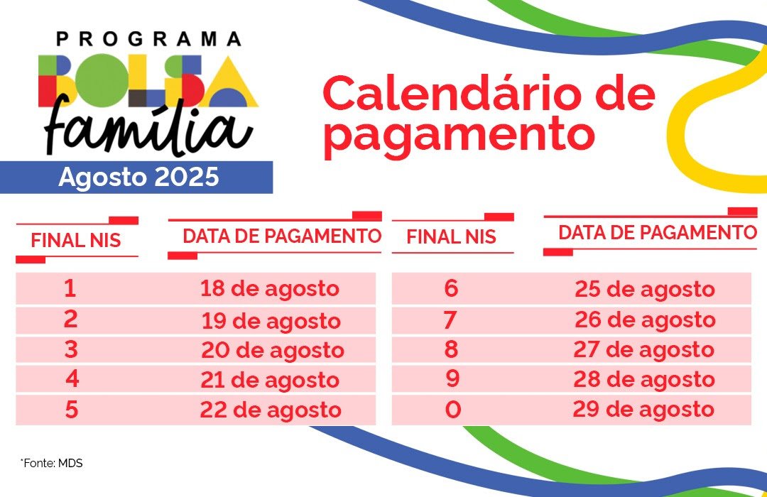 O cronograma de pagamento do Bolsa Família em agosto de 2025 tem início nesta segunda-feira, dia 18. O programa de transferência de renda do Governo Federal contempla 19,19 milhões de famílias neste mês. O valor médio de repasse é de R$ 671,54, a partir de um investimento de R$ 12,8 bilhões. Os repasses levam em conta o final do Número de Identificação dos Beneficiários (NIS) e seguem até o dia 29 (confira abaixo).