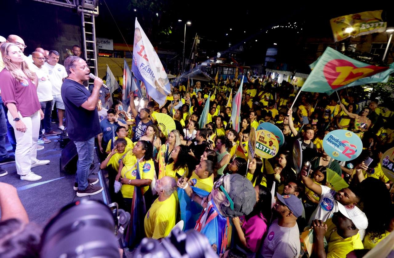 O candidato Rodrigo Neves e a vice Isabel Swan participaram, na noite desta quarta-feira (02.10), de um grande comício no bairro do Caramujo, na Zona Norte da cidade. Mais de quatro mil pessoas, entre moradores e correligionários participaram do encontro, que contou com a presença de Guilherme Bussinger, que há dois dias retirou a candidatura a prefeito (Mobiliza) para apoiar o trabalhista.