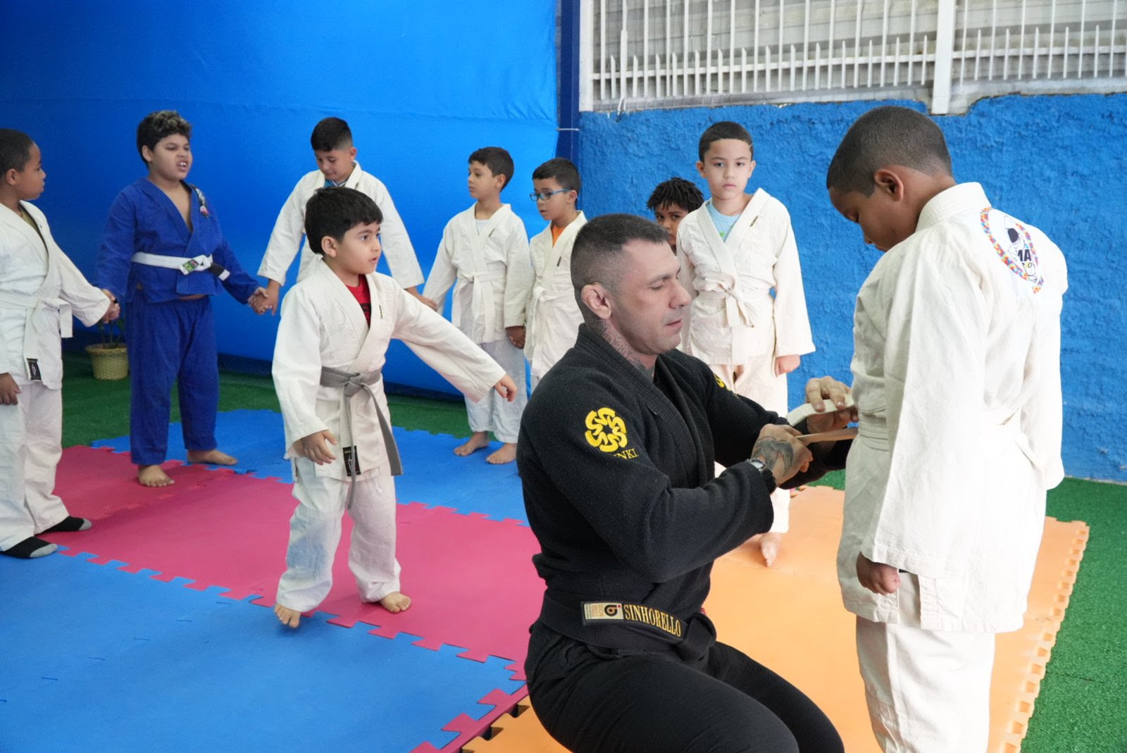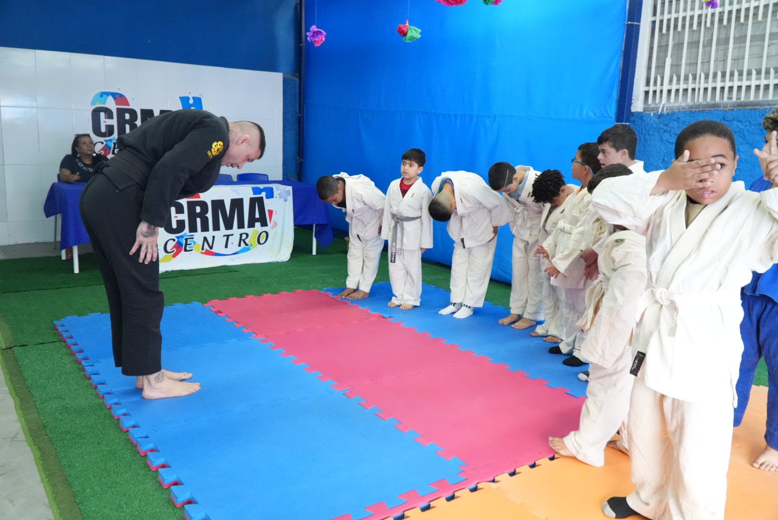 O Centro de Referência Municipal do Autista Marlene Felício Faria, no Centro, realizou, nesta terça-feira (19), a aula inaugural de Jiu-Jítsu para os atendidos. O evento contou com entrega de kimonos, explicação sobre a arte marcial para alunos e responsáveis e uma demonstração da aula, que acontecerá às terças-feiras e quintas-feiras na unidade. A iniciativa é a Secretaria de Educação da Prefeitura de São Gonçalo.