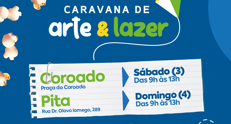 A Caravana de Arte e Lazer segue levando muita diversão para as crianças do município e, no próximo fim de semana, não vai ser diferente. Os moradores do bairro Brasilândia vão receber o projeto no sábado (3) e, no domingo (4), será a vez do Pita, sempre das 9h às 13h.