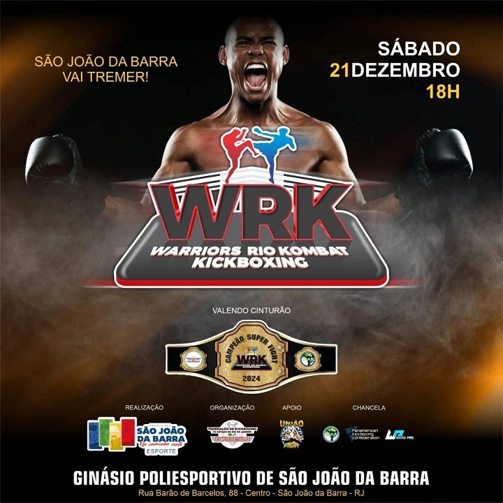 A FKBERJ traz de volta, em grande estilo, o WRK Kickboxing – Warriors Rio Kombat, o evento Profissional do estado do Rio de Janeiro com apoio da Prefeitura de São João da Barra, através da Secretaria de Esportes!