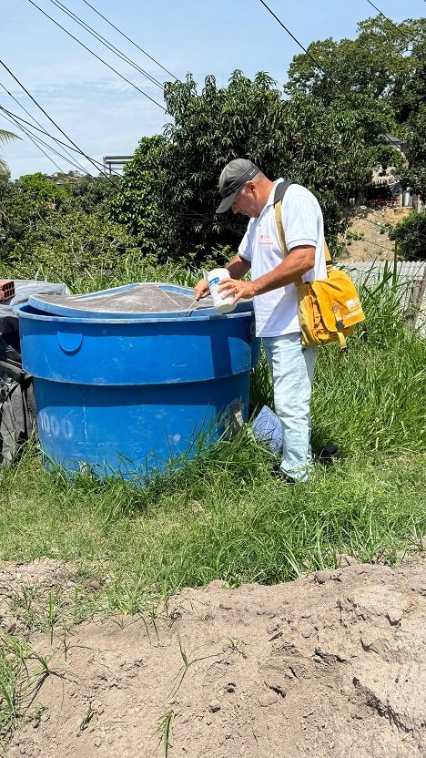 Paralelamente, uma equipe do CCZ realizou uma ação educativa no Mercado Municipal, distribuindo panfletos e orientando a população sobre medidas de prevenção à dengue e outras arboviroses.
