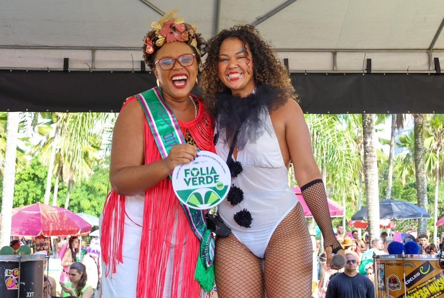 Em seguida, o Divinas Tretas recebeu o selo com a presença da Secretária de Meio Ambiente e Clima, Tainá de Paula. No Aterro do Flamengo, na Zona Sul o Rio, o bloco transforma a rua em palco de diversidade, respeito e afirmação de direitos. “Neste ano, o Divinas Pretas recebe o Selo Folia Verde, que representa um compromisso com a educação ambiental, mas também com a continuidade de um Rio mais verde, com mais árvores, com todo mundo cuidando dele”, destacou a secretária.
