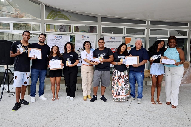 A Prefeitura de Niterói, por meio da Secretaria de Assistência Social e Economia Solidária, realizou neste sábado (10/05) o encerramento da primeira turma do programa Território da Juventude, que integra um dos 18 eixos do Pacto Niterói Contra a Violência e tem promovido a transformação social por meio da cultura, da cidadania e do protagonismo juvenil no Complexo do Viradouro. A cerimônia aconteceu na Plataforma Urbana Digital Viradouro (PUD).