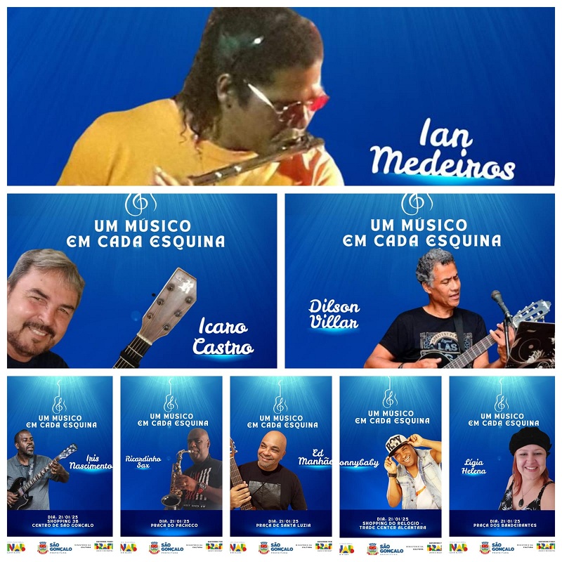 Com o apoio da lei Aldir Blanc o projeto Um músico em cada esquina idealizado pelo músico Ian Medeiros e escrito pela empresa Editando e Projetando colocará no dia 21/01/25 a partir das 10hs 08 (oito) músicos espalhados em pontos distintos da cidade.